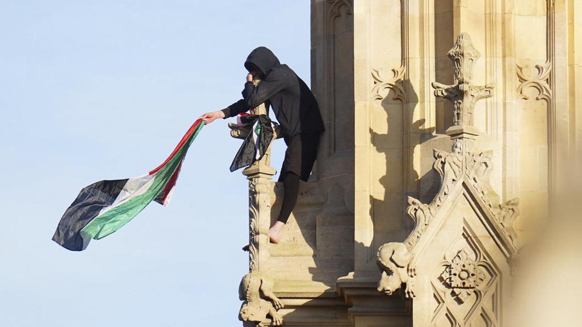 İngiltere’de Big Ben’e çıkarak Filistin bayrağı açan protestocu eylemi sonlandırdı