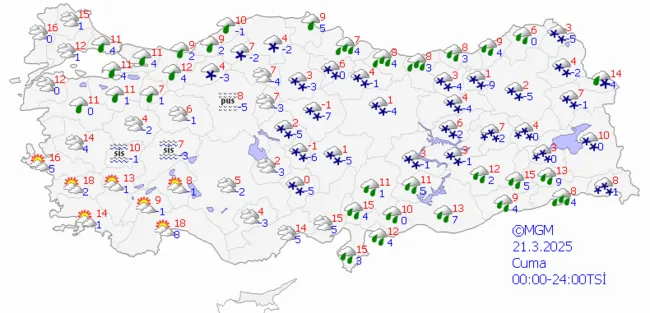 Çok bulutlu, aralıklı karla karışık yağmur ve kar yağışlı geçeceği tahmin ediliyor. Yağışların, bu akşam saatlerinde yer yer kuvvetli olması bekleniyor.