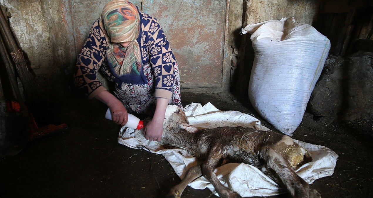Gölbaşı köyünde Erdal Yokuş’a ait inek, sezaryenle, birisi kafatasında anomali bulunan iki buzağı dünyaya getirdi. Kafa yapısının bozuk olması nedeniyle annesinden beslenemeyen buzağıya biberonla süt verilmeye çalışılıyor. Besici Erdal Yokuş, AA muhabirine, normal bekledikleri doğumun gerçekleşmemesi üzerine veteriner hekim çağırdıklarını söyledi.